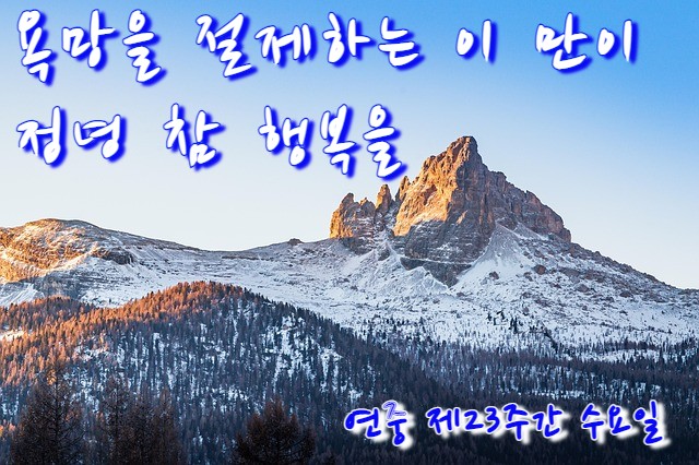 | 제목 | ■ 정녕 욕망을 절제하는 이 만이 참 행복을 / 연중 제23주간 수요일 | |||